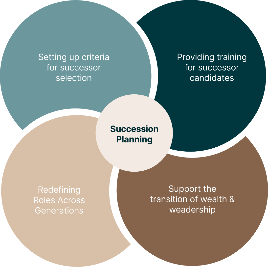 - Supporting the transfer of wealth, ownership, knowledge, and responsibility between the incumbents and successors